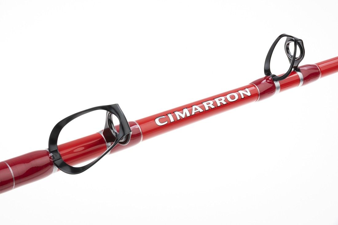 - Las cañas Cimarron vienen equipadas con conteras de cruceta metálicas de la marca ALPS, ofreciendo una gran resistencia. Además, los zancos son rectos para los modelos de 50 y 80 Lbs y curvos para los modelos de 120 y 130 Lbs, adaptándose a diferentes tipos de pesca y necesidades de cada pescador.