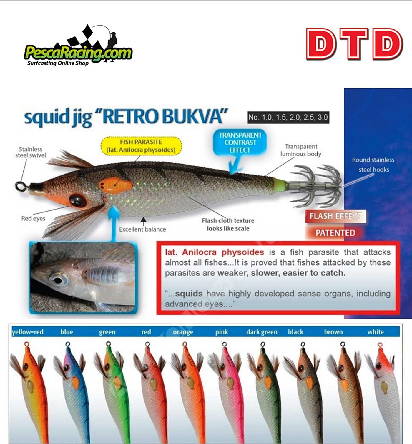Las Jibioneras DTD Retro Bukva son 100% efectivas, imitando un pequeño pez pasto herido o vulnerable incorporando en un lateral la imitación de una pulga de mar, cubierto de tela dándole mas realismo.