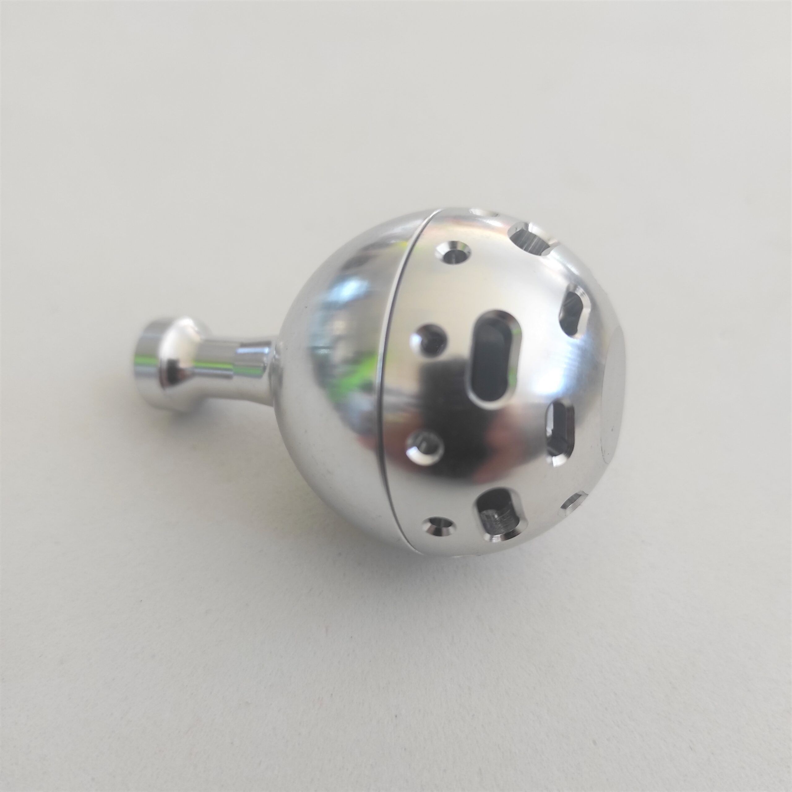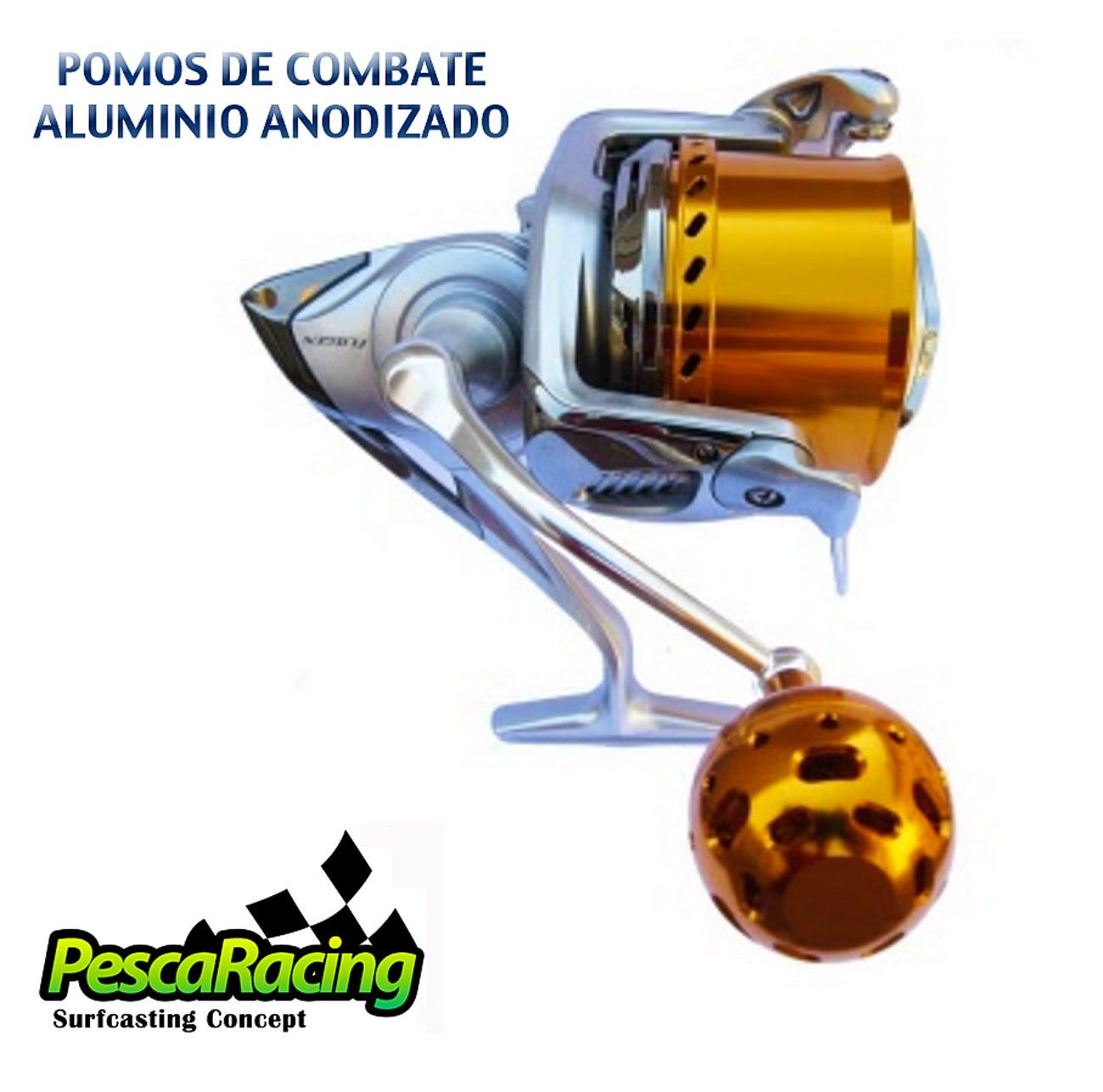 Pomo de pesca anodizado, fabricado en aluminio y con un diseño muy cómodo gracias a su forma circular, muy ligeros y con rodamientos de primera calidad. De fácil montaje.