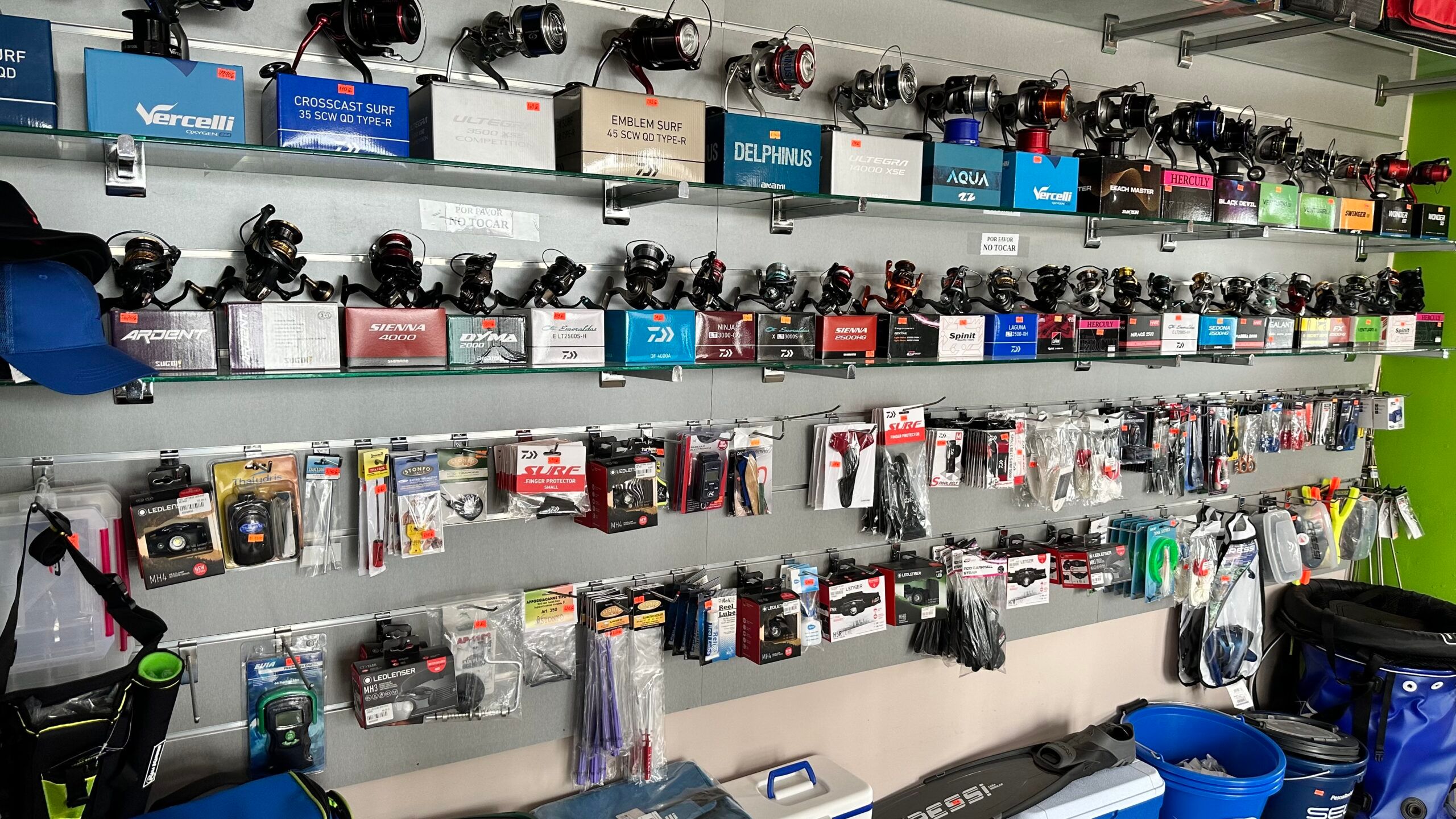 • Productos: ofrecemos una amplia variedad de productos para pesca recreativa y de competición, como bobinas, hilos, anzuelos, cañas, carretes, señuelos para Spinning, Currican y Egis para la pesca de cefalópodos, y muchos otros artículos para todo tipo de pesca.
